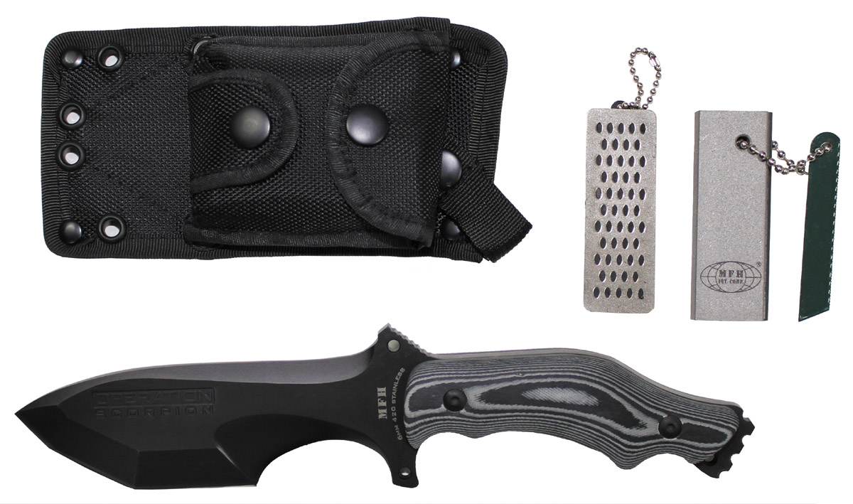 Messer, "Operation Scorpion", schwarz,Micarta-Griff, Scheide