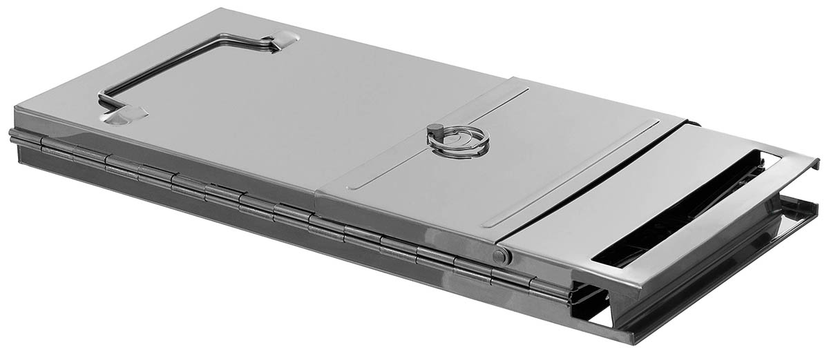 große Frontklappe mit Arretierung