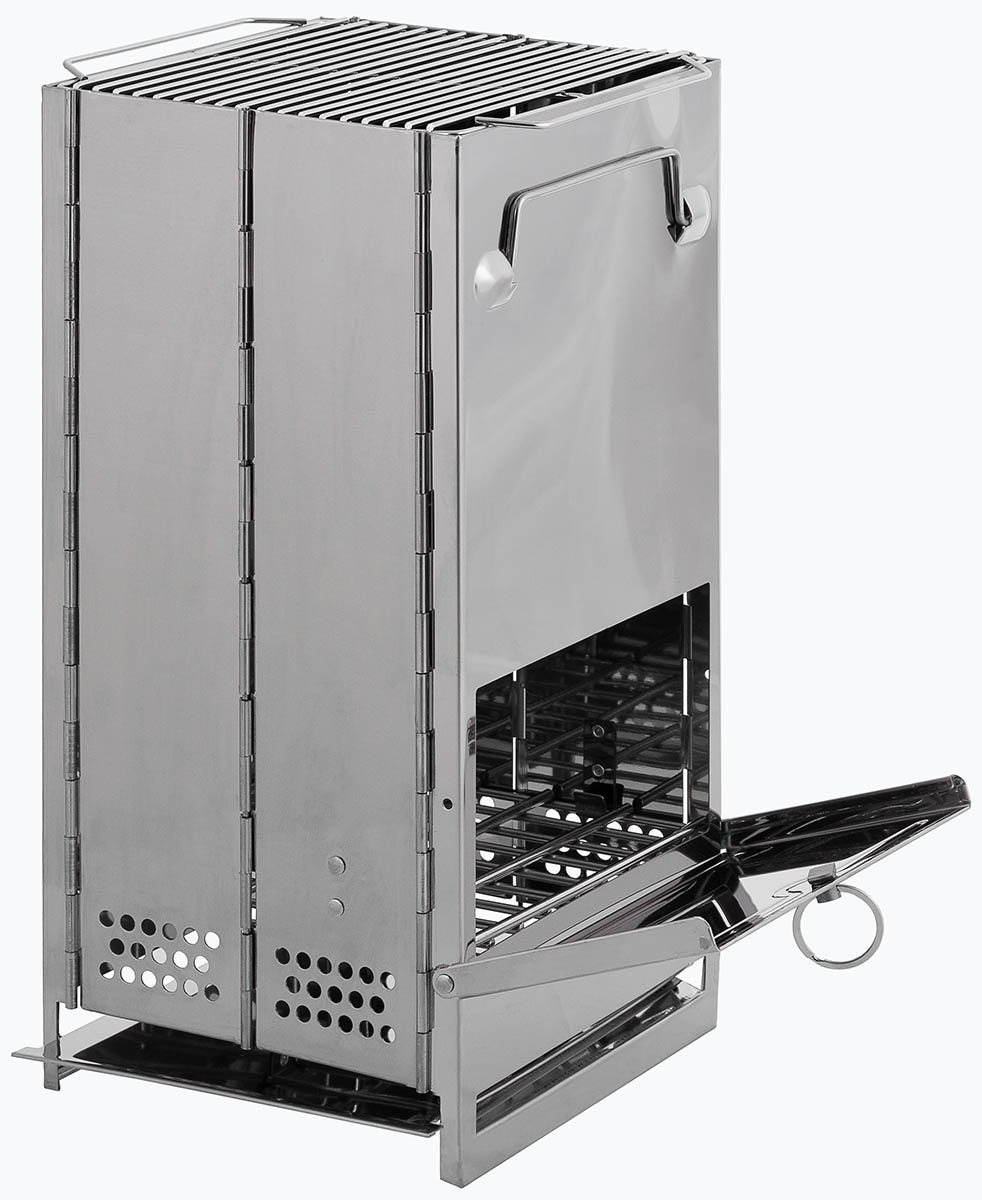 Raketenofen, mit Rost, faltbar, groß, Edelstahl