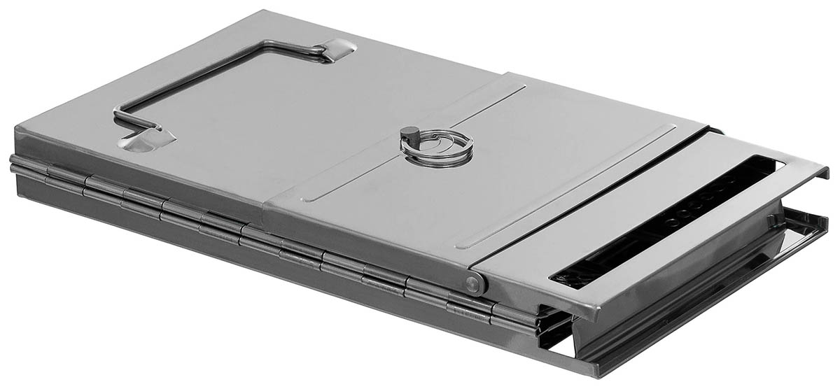 große Frontklappe mit Arretierung